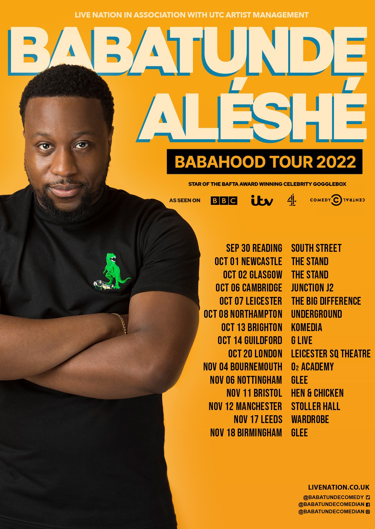 . ITV have formally announced the line-up of names. Im Babatunde Aleshe and Im a stand-up comedian actor and writer. Babatunde Aleshes is an award winning comedian actor and writer Source.